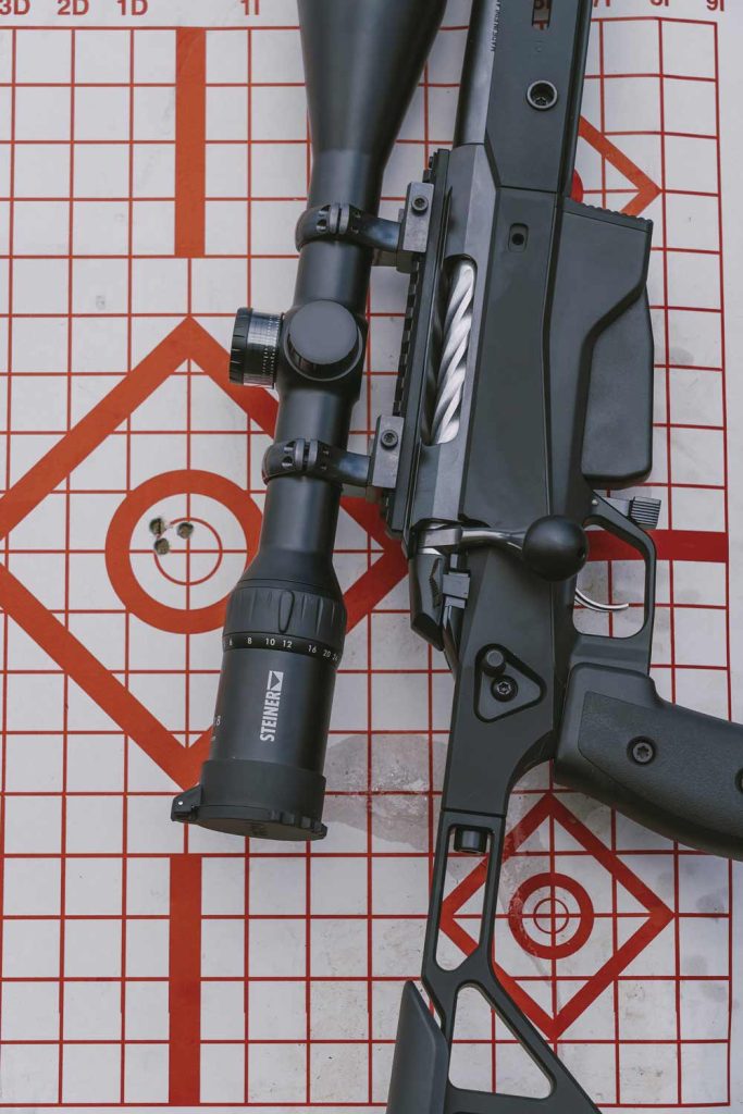 Durante las pruebas, realizadas con un visor Steiner Ranger 8 4-32×56, sorprendió la facilidad para repetir disparos consistentes, logrando agrupaciones muy destacables sin apenas adaptación previa.
